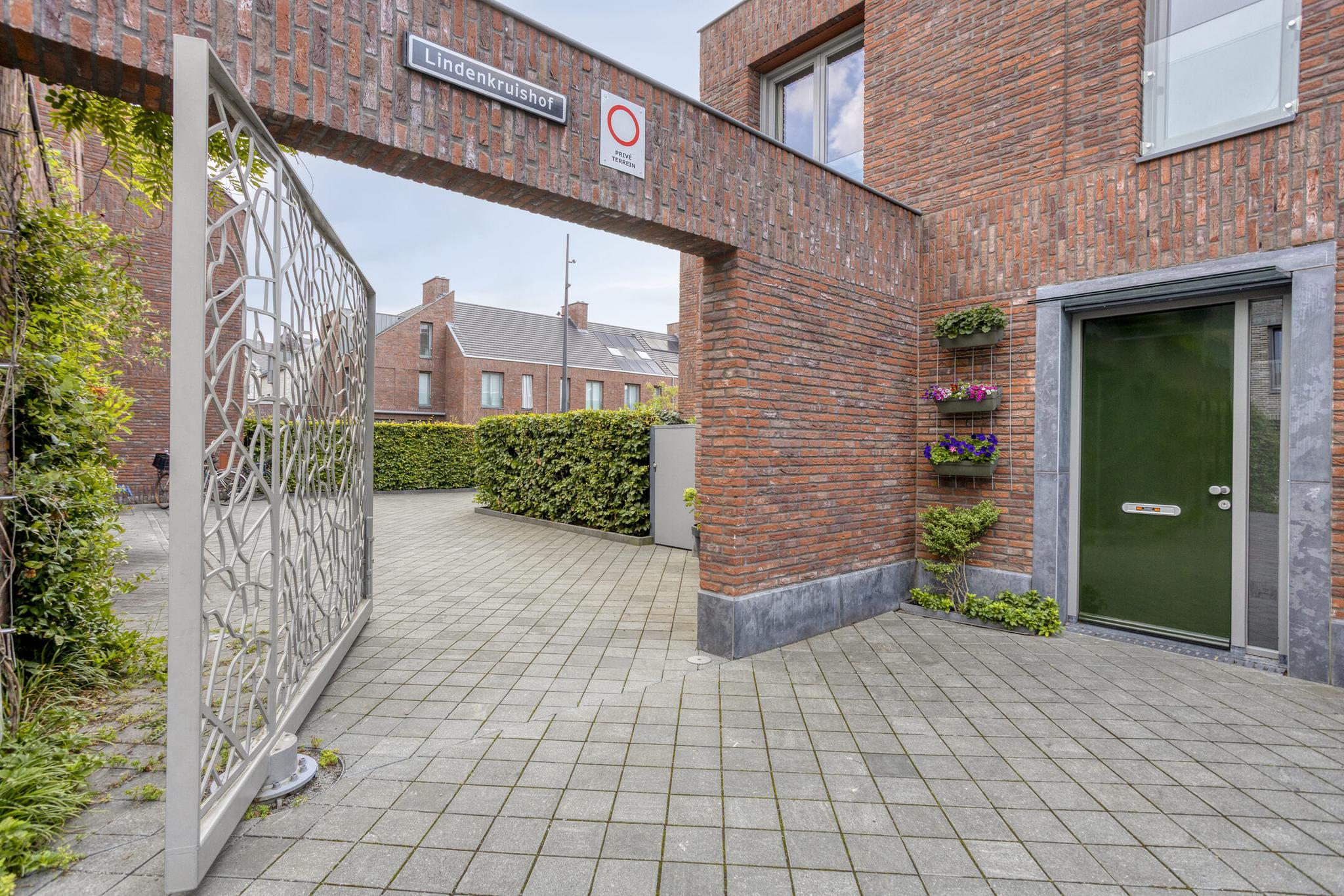 Aan de achterzijde van de woning is het Lindenkruishof gelegen met een viertal toegangspoorten.