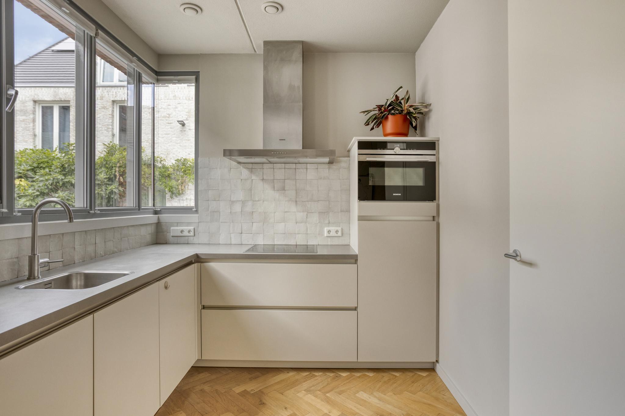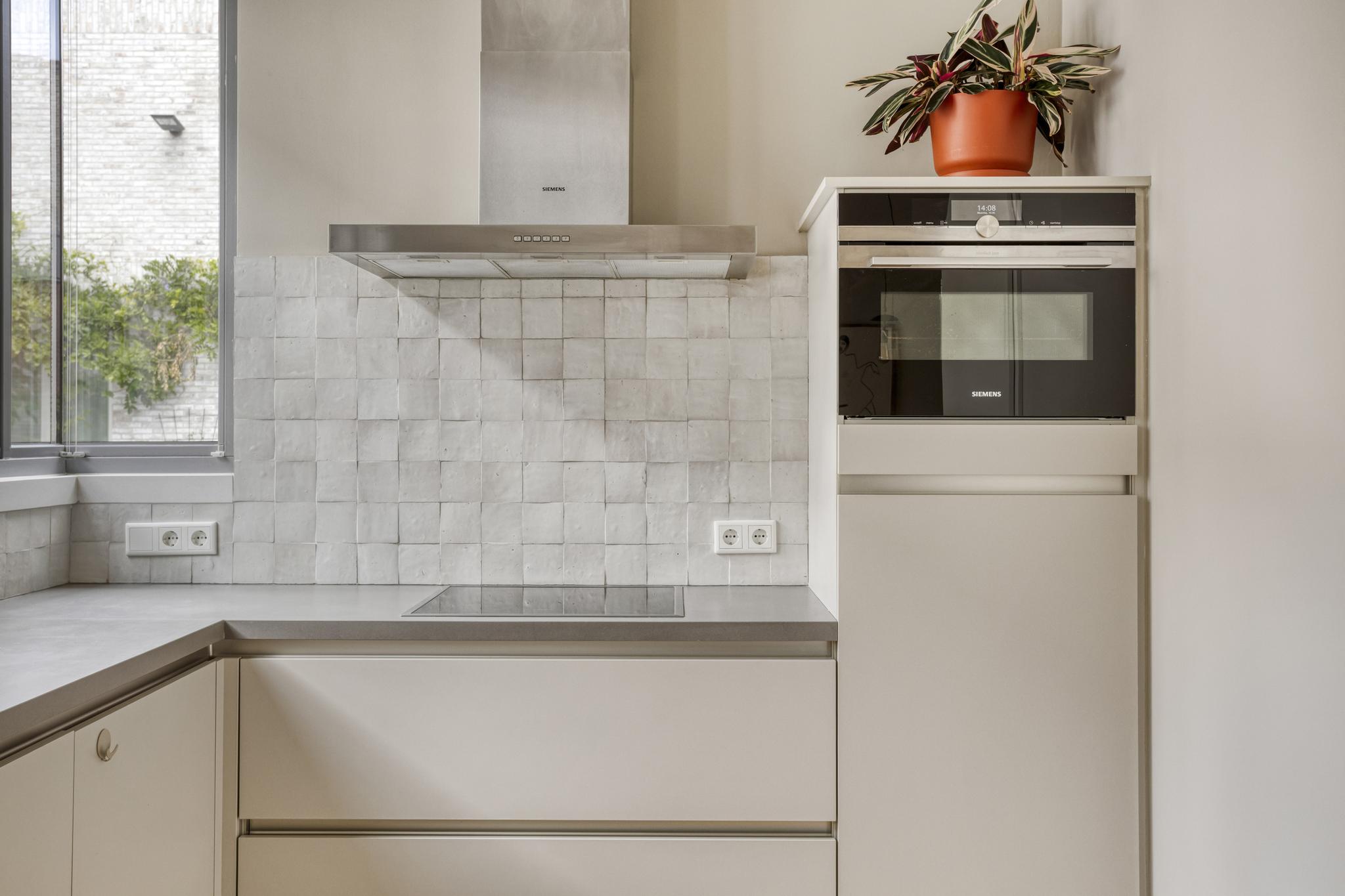 De open leefkeuken (12,5m²) aan de voorzijde van de woning gelegen is voorzien van o.a een inbouw koelkast, vaatwasser, 4 zone inductiekookplaat, oven en afzuigkap, alle apparatuur is van het merk Siemens.