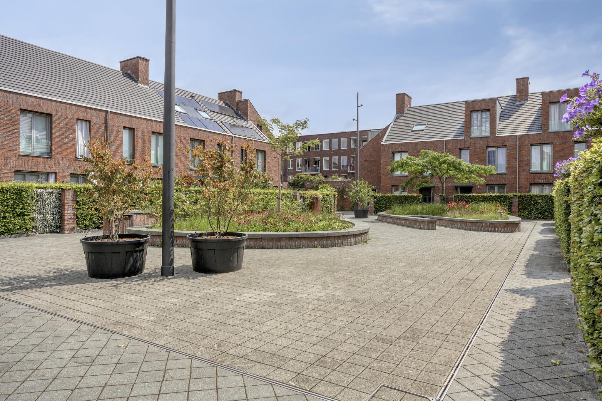 Er is tegelwerk aangebracht en de beplanting is aangelegd in bakken – voldoende groen, weinig onderhoud!