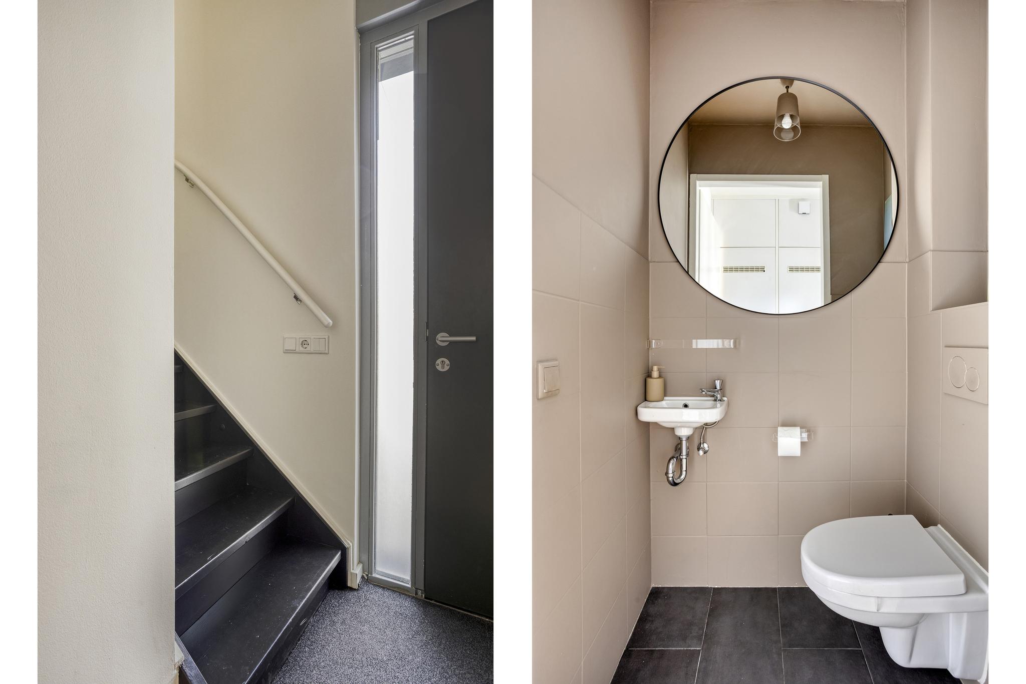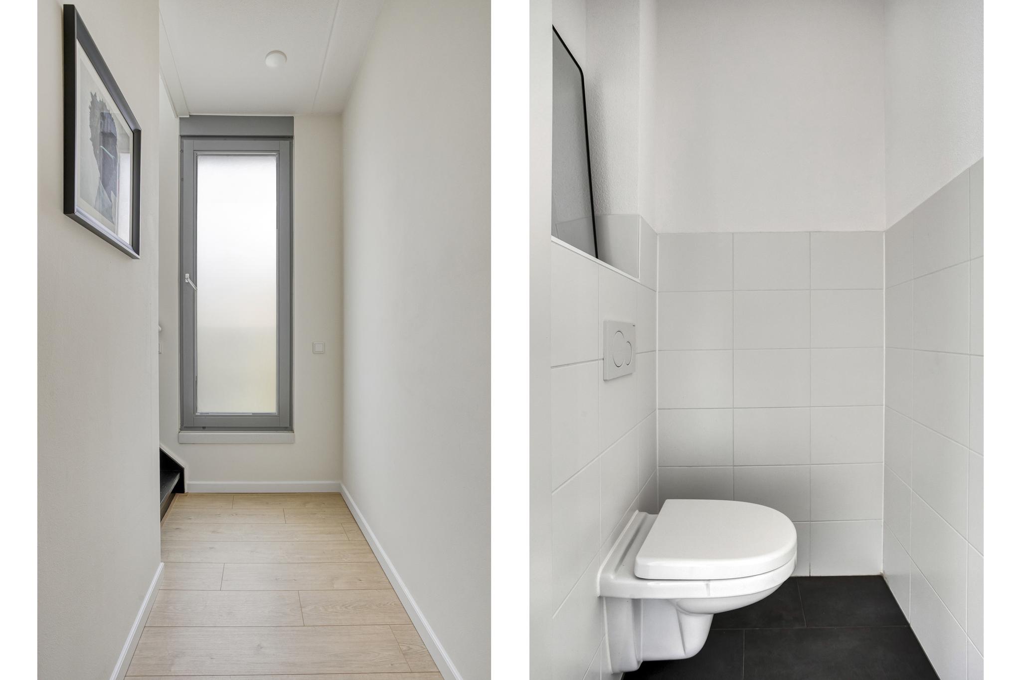 Op de overloop is de separaat gelegen toilet aanwezig met een zwevende toilet zitting.
