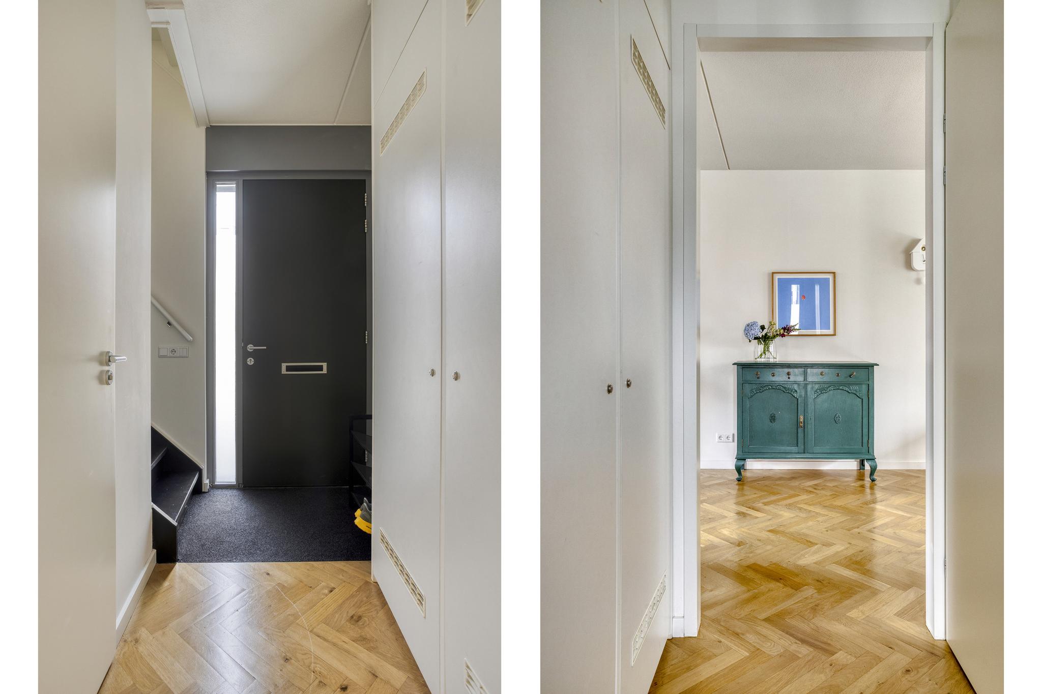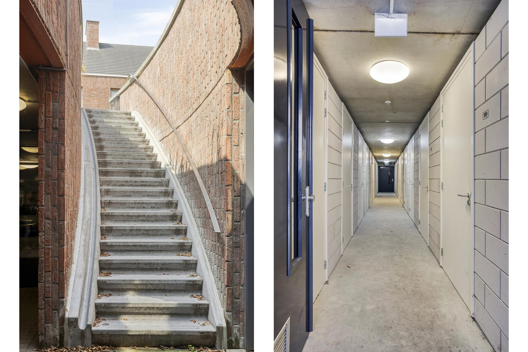 mogelijkheden voor opslag. Via de speels aangelegde trap is de achterzijde van de woning te bereiken.