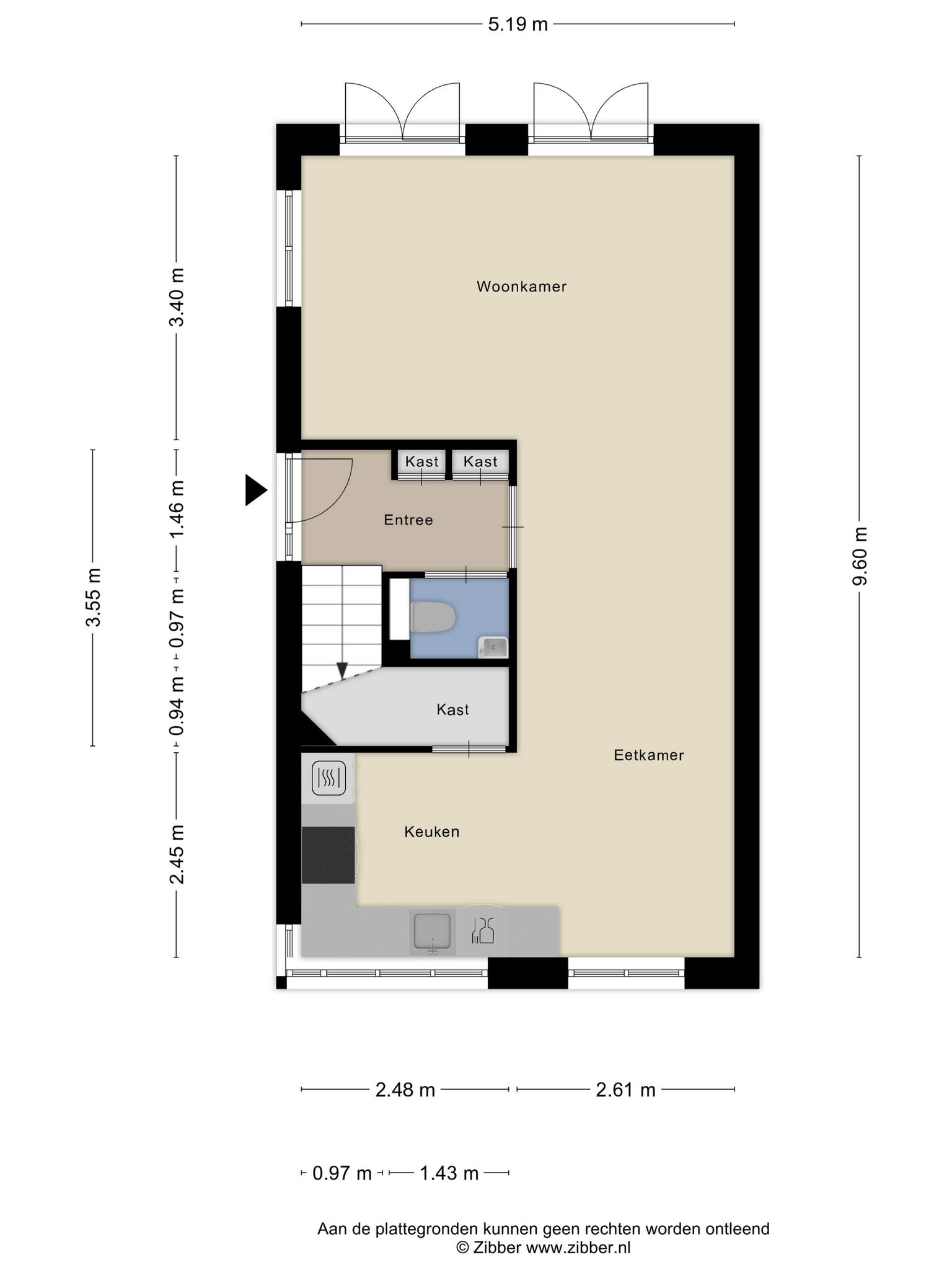 Deze kamer kan gemakkelijk gesplitst worden in een toegangshal en twee ruime slaapkamers.
