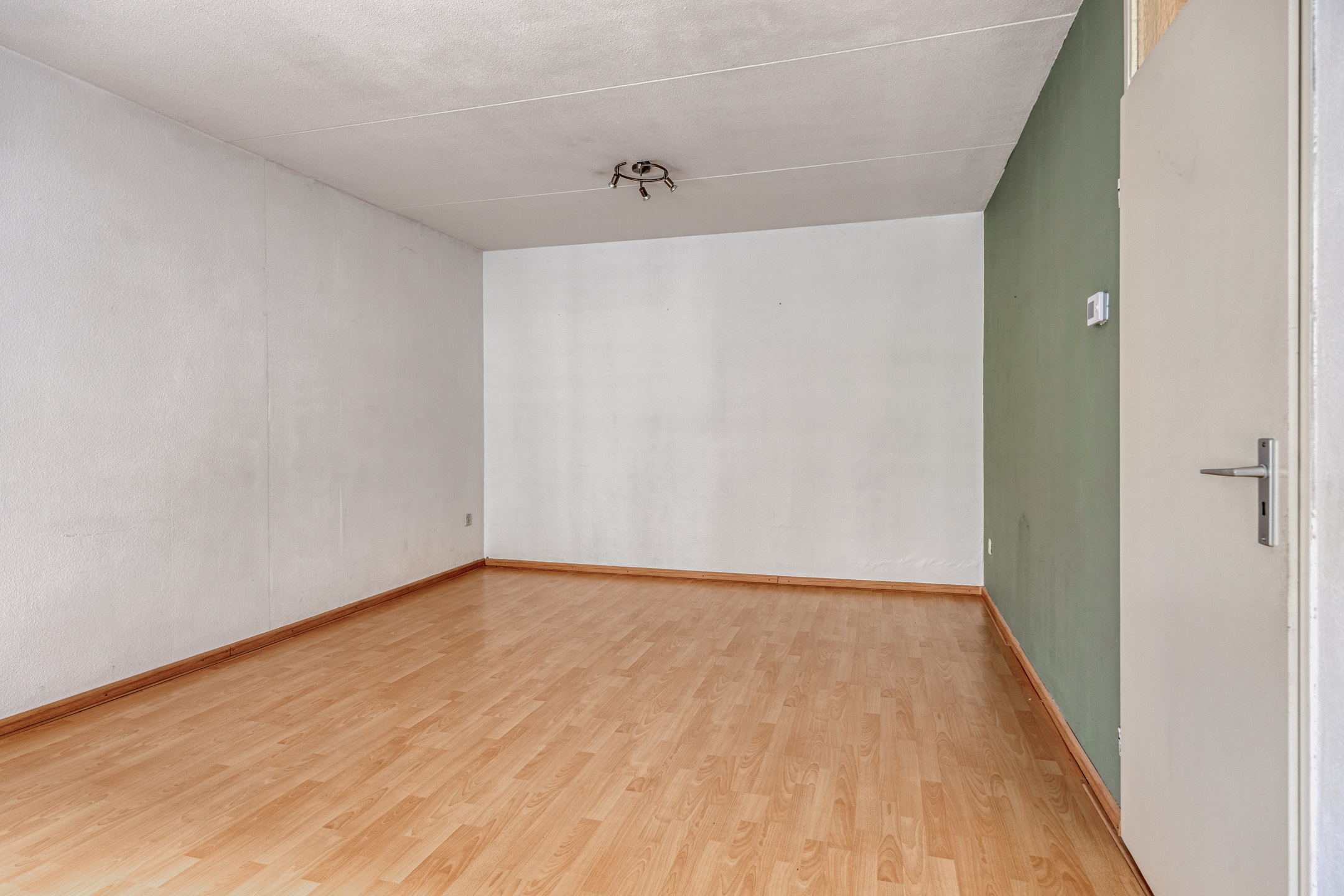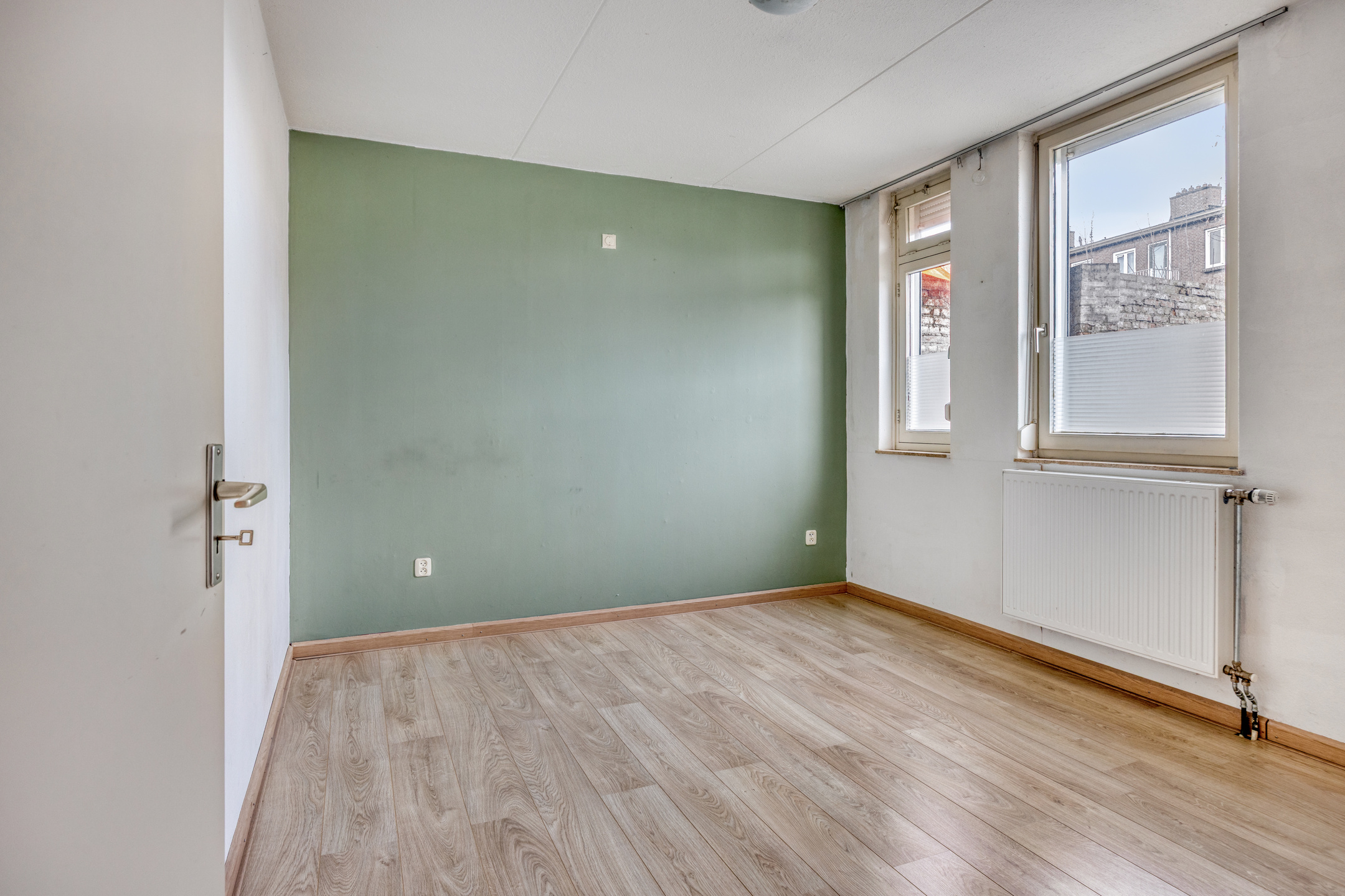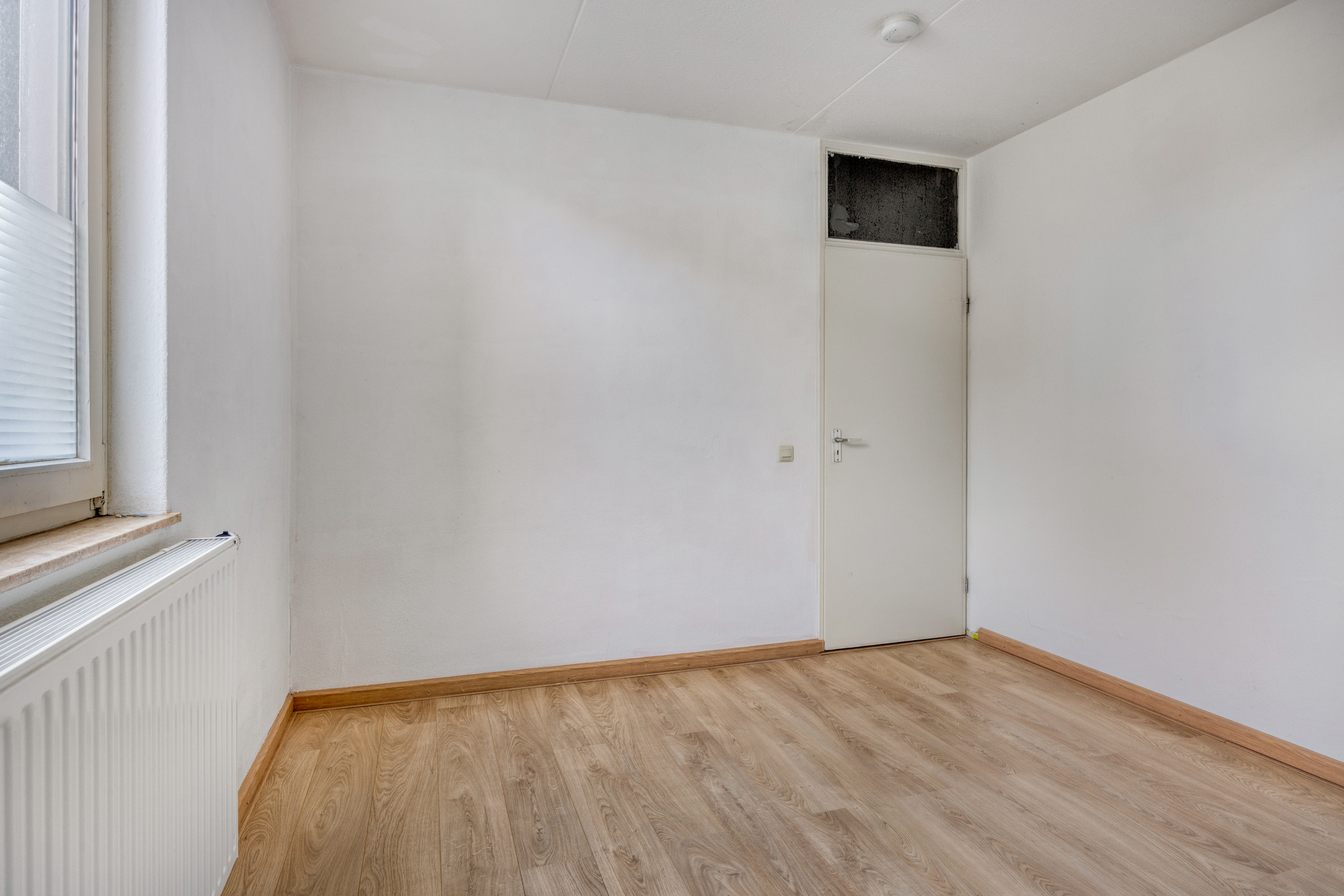 De kamer is voorzien van houten kozijnen met isolerende beglazing, een handbediend rolluik en een laminaatvloer.