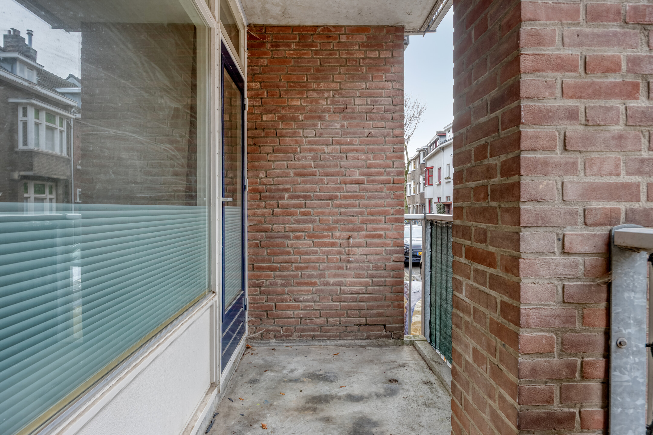 Dit balkon is groot genoeg om een tafeltje met stoelen te plaatsen en hier comfortabel te kunnen ontspannen.