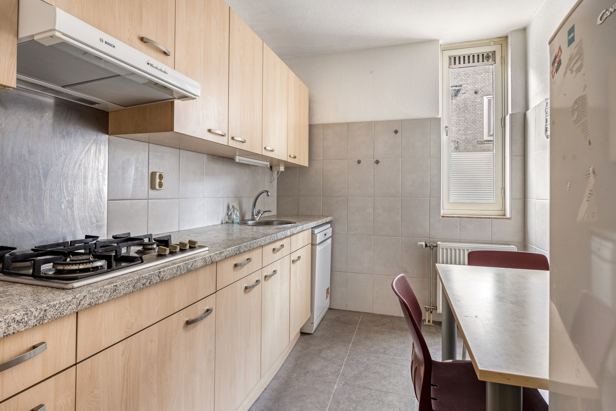 een losstaande koel-vriescombinatie (verouderd) en een vaatwasser.