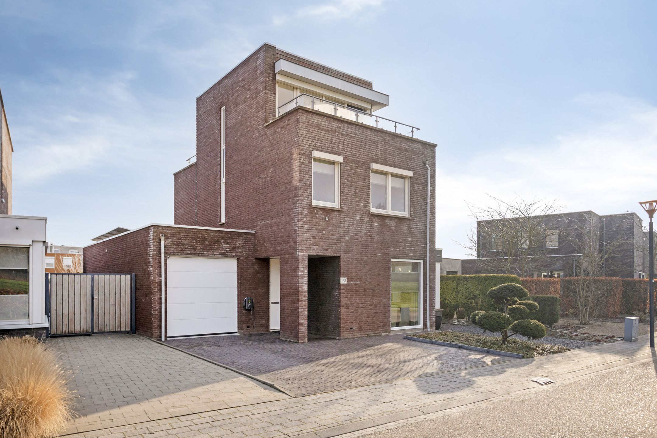 De garage is een sectionaal poort die op op afstand te bedienen is.