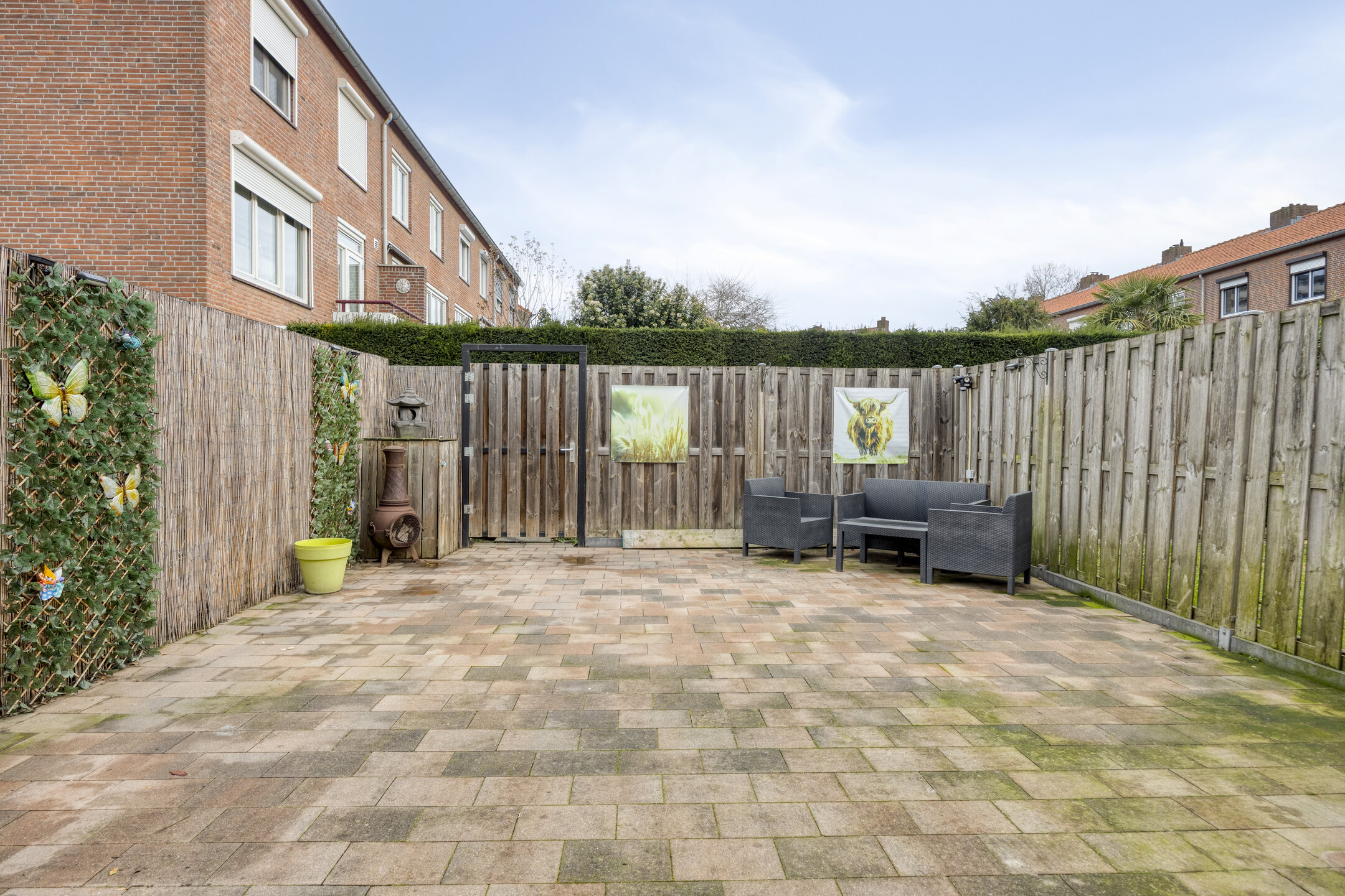 De tuin is keurig aangelegd met straatwerk. Dankzij de ligging en diepte van de tuin is er de gehele dag zon aanwezig.