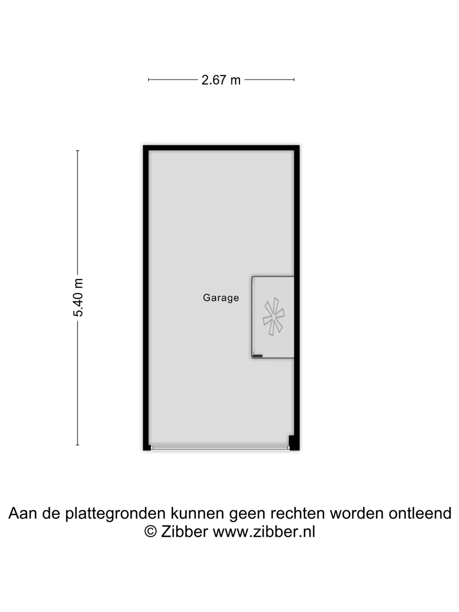 Privé-garage (14 m²) met privé-oprit. Er is elektra aanwezig en een handmatige kantelpoort.