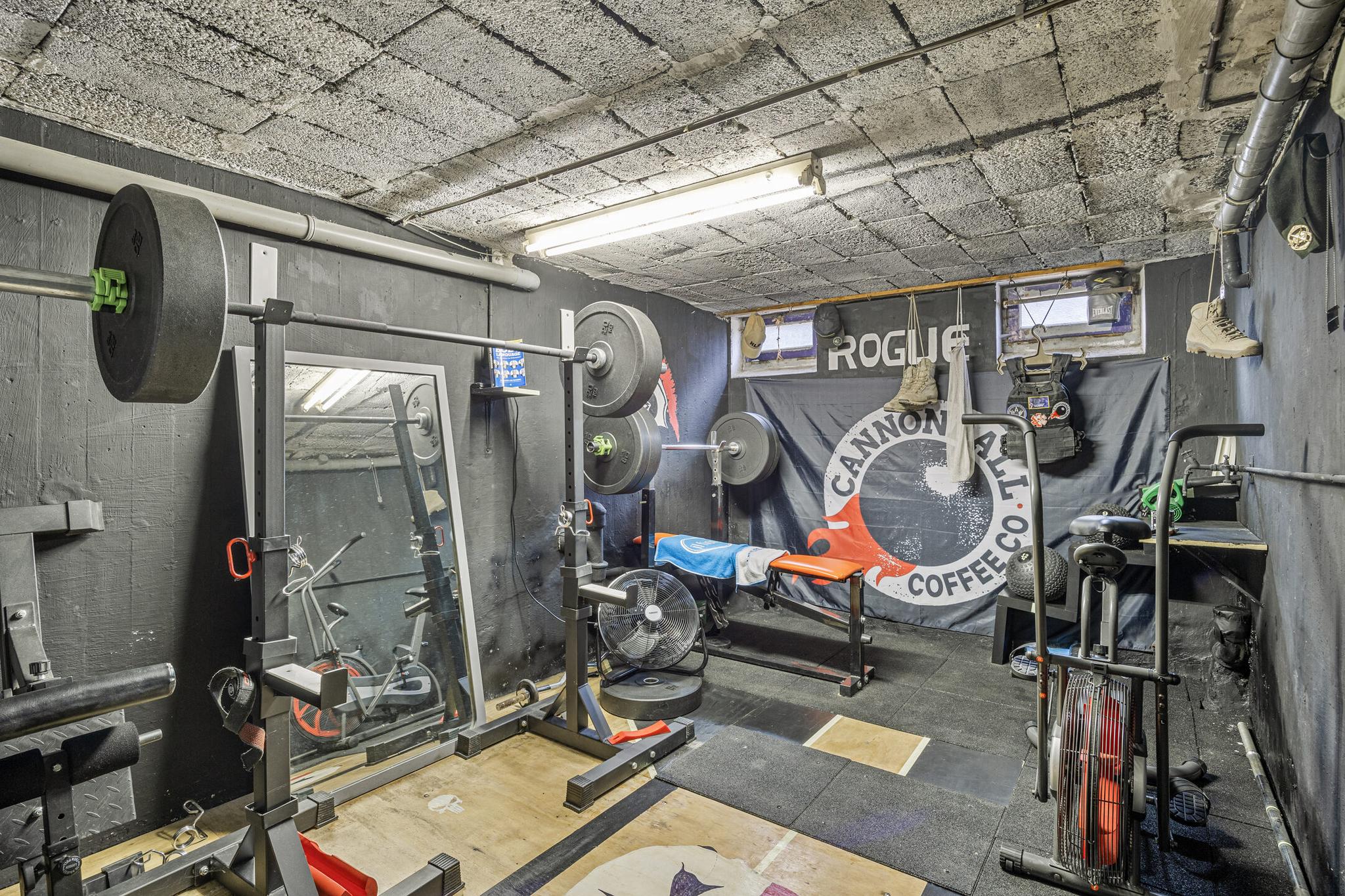 Zeer royale (sport) kelder(s) die v.v. rubberen (cross-fit) vloermatten en er zijn was en droger aansluitingen.