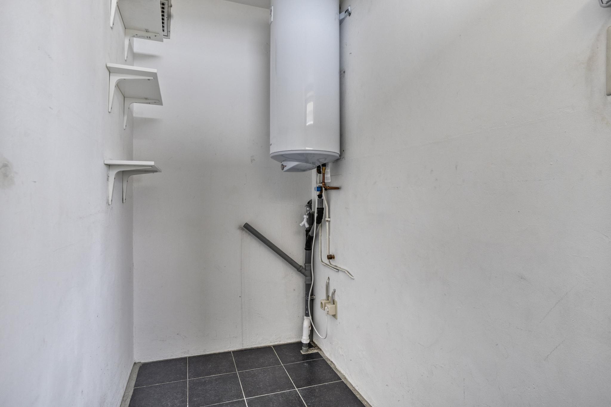 Vanuit de keuken is er toegang tot de berging (4m²) met witgoed aansluitingen en eigendom boiler. (Tesy, 120 ltr.)