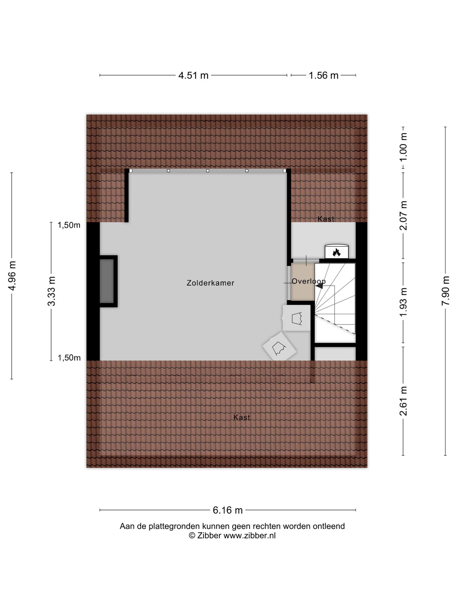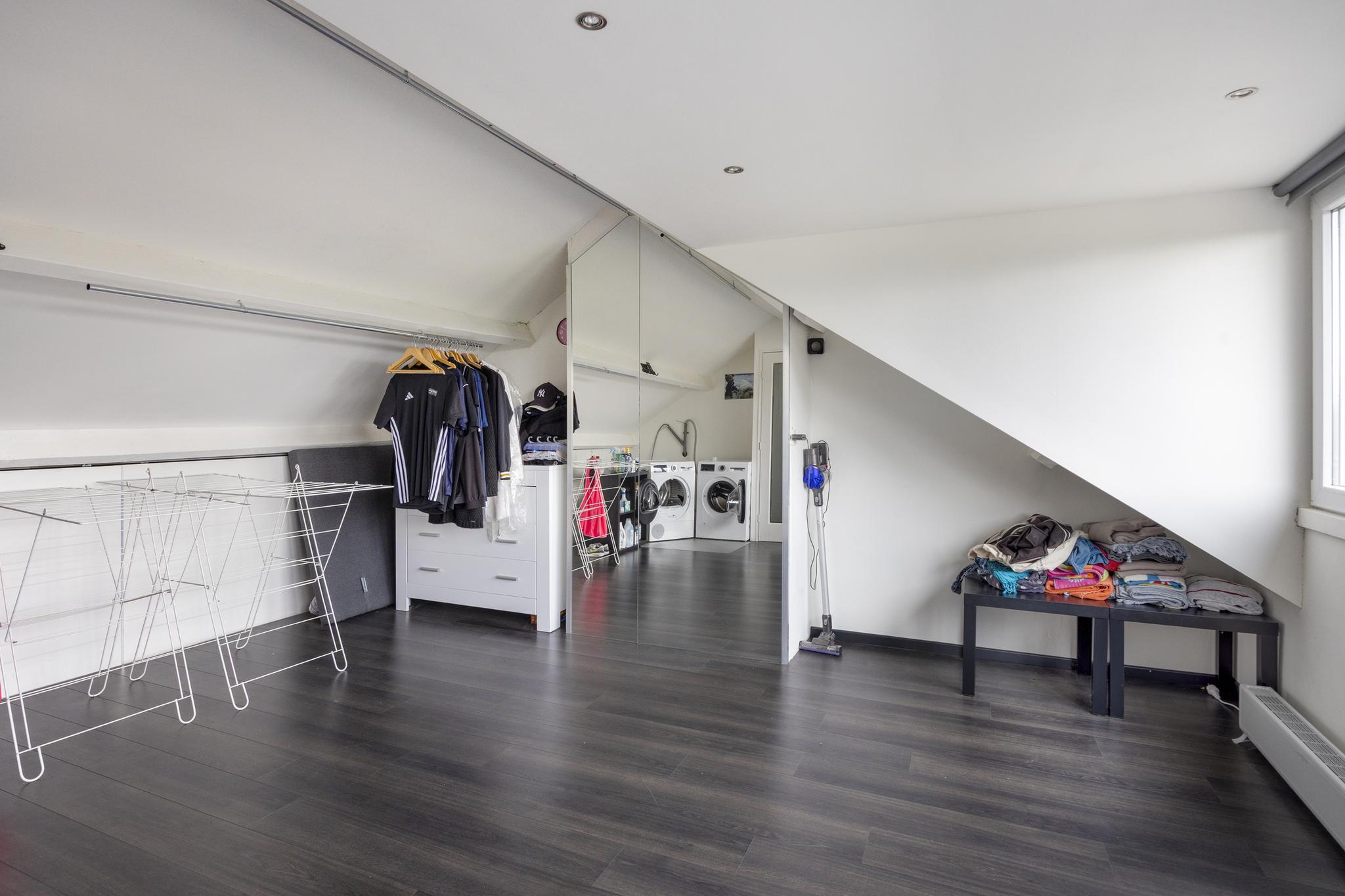 Royale zolderkamer (21m2) met groot dakkapel. Hier is de wasmachine- en drogeraansluiting gesitueerd.