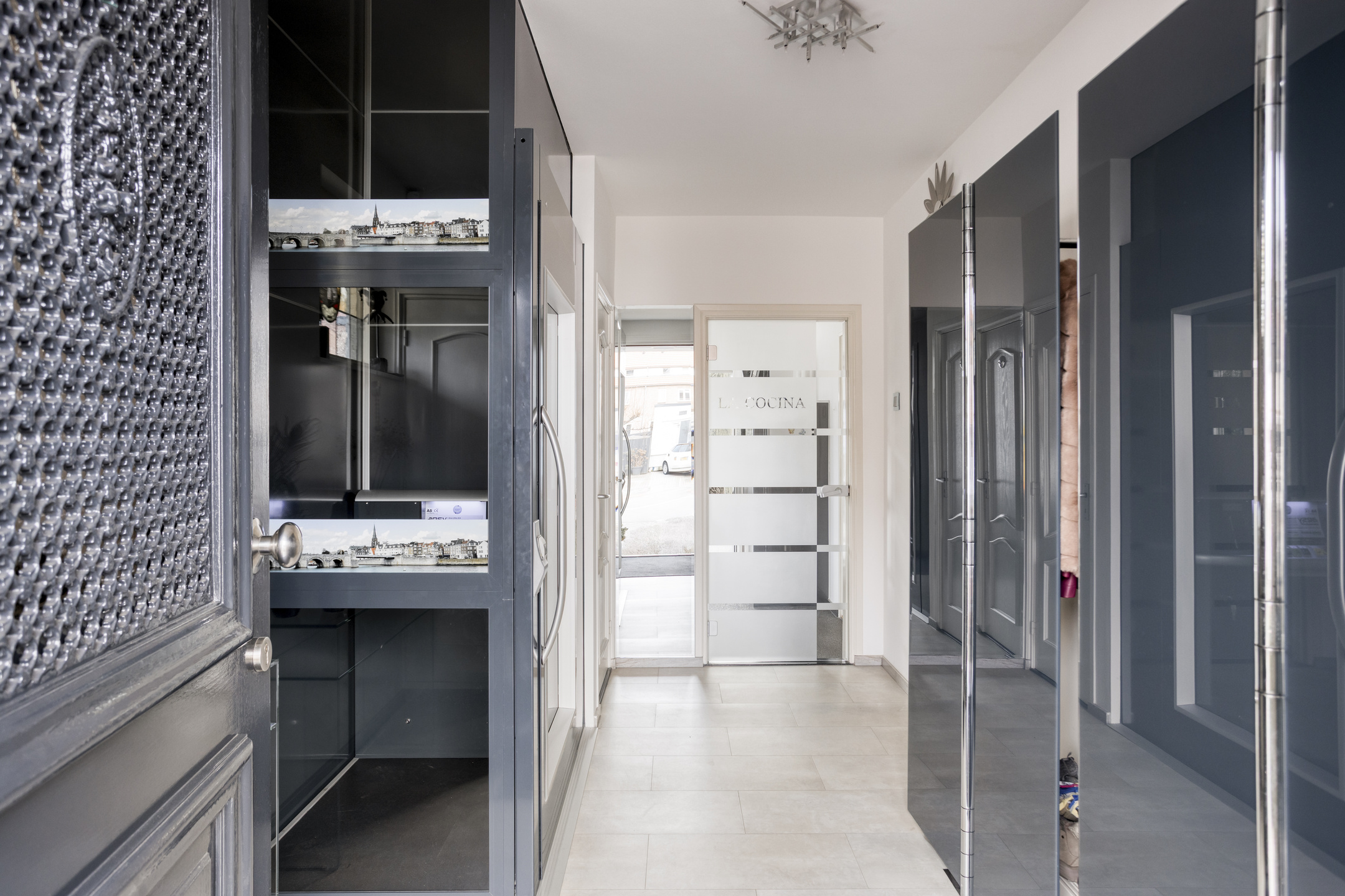 Via de voorzijde van de woning betreedt u de woning middels een fraaie houten voordeur met glaspartij. In de betegelde hal (ca. 7,5 m²) is ruimte voor een garderobe en bevindt zich de meterkast. De groepenkast is modern uitgevoerd met maar liefst 14 groepen en diverse aardlekschakelaars. Tevens is er een 3-fase aansluiting aanwezig, onder andere ten behoeve van een laadstation voor een elektrische auto.