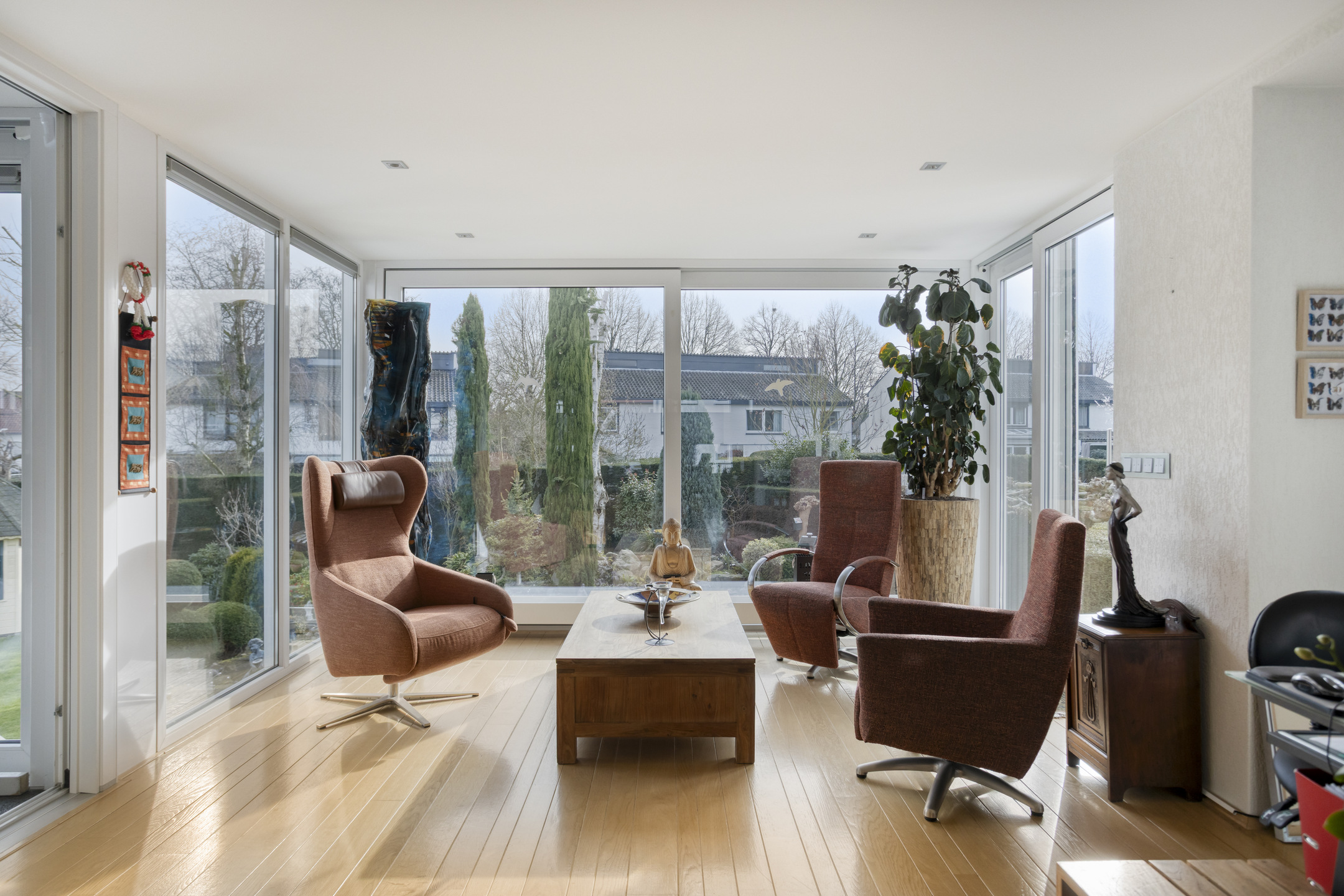 Vanuit de zithoek is er bovendien fraai zicht op de Sint Theresiakerk met haar karakteristieke toren en klok.