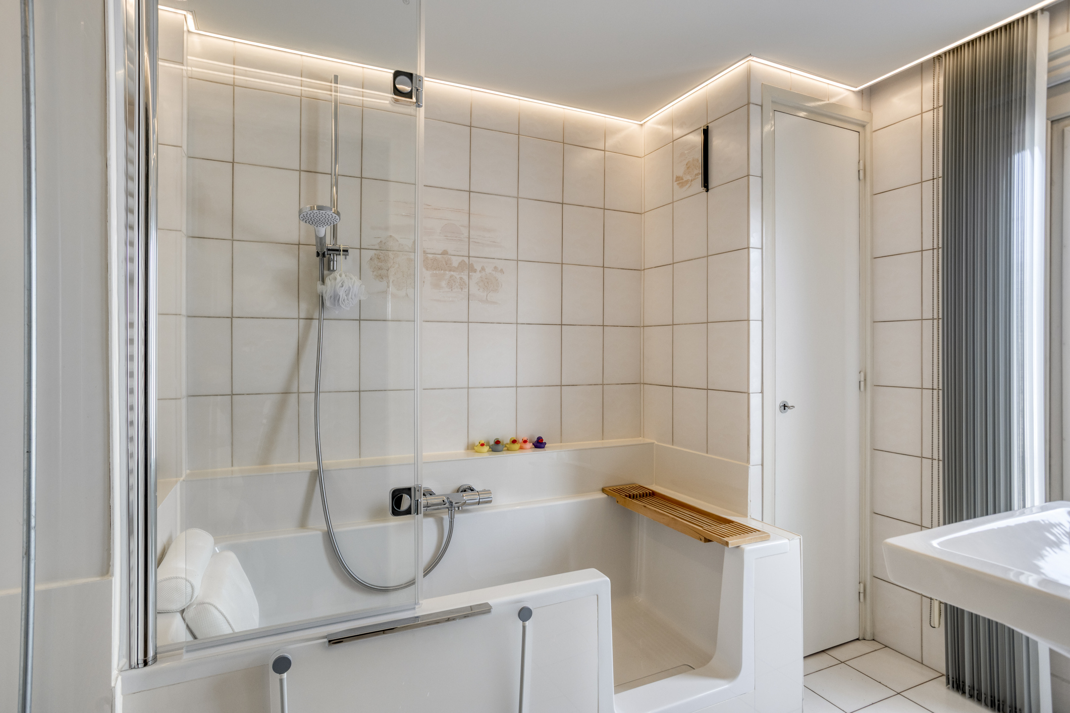 Tevens is deze badkamer voorzien van een balkondeur met toegang tot het balkon aan de zijkant van de woning.