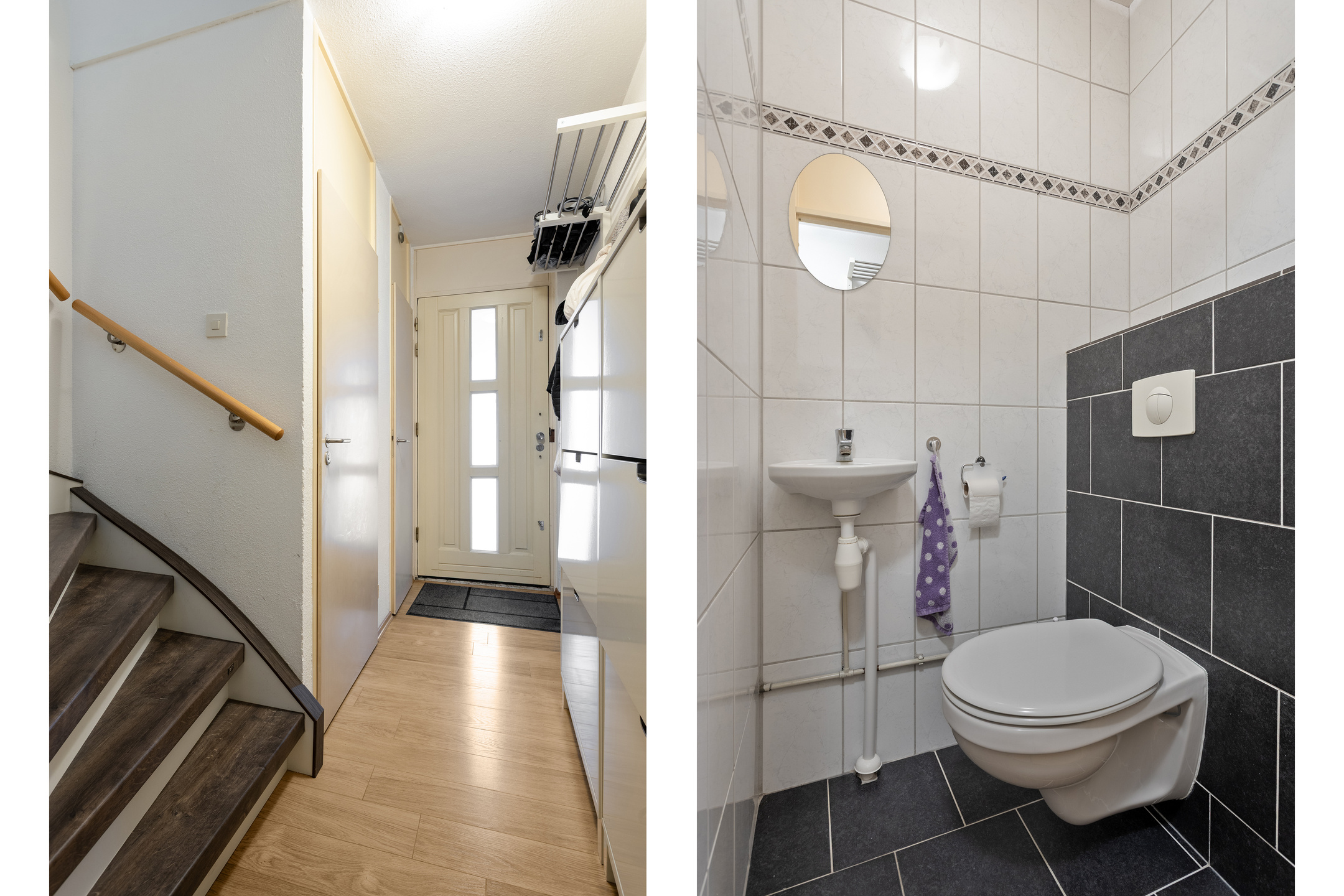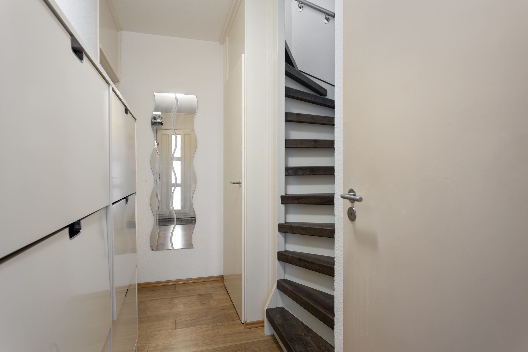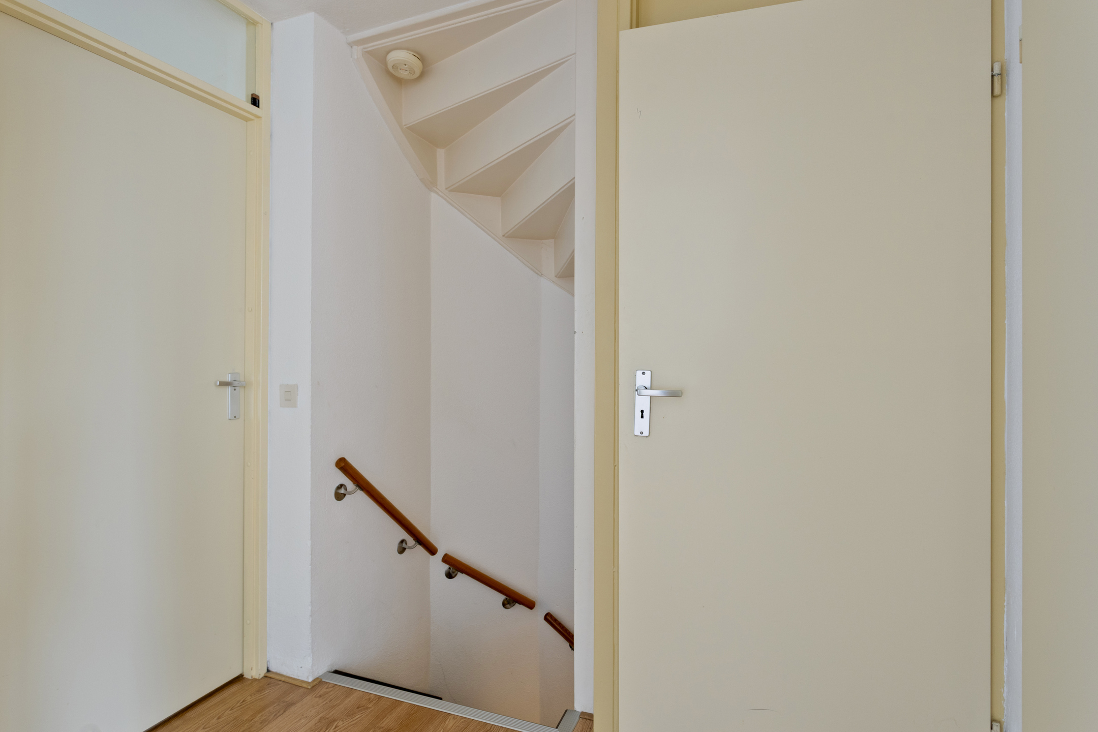 Via de gezamenlijke trap met de buren is de entree van de woning te bereiken.