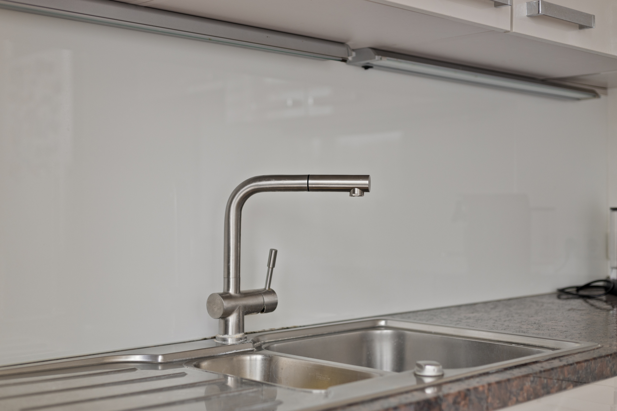 hete lucht oven (AEG), afzuigkap, vaatwasser, spoelbak, koelkast met vriesvak (Liebherr).