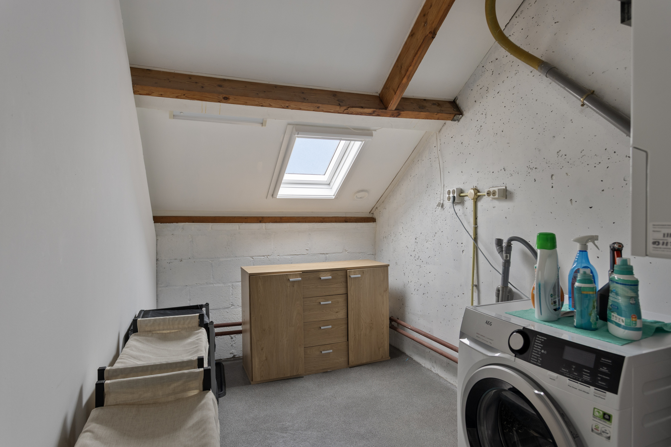 De waskamer (8,8m²) is v.v. een wasmachineaansluiting; hier bevindt zich tevens de combiketel (Hesi, € 40,79,- p/m).