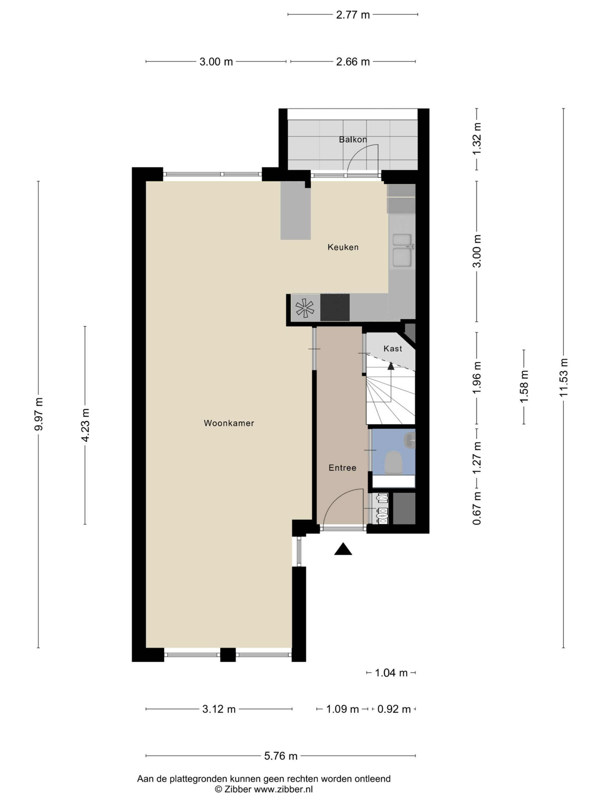 Via de keuken heeft u toegang tot het balkon (3m²) aan de achterzijde (zuidoost).